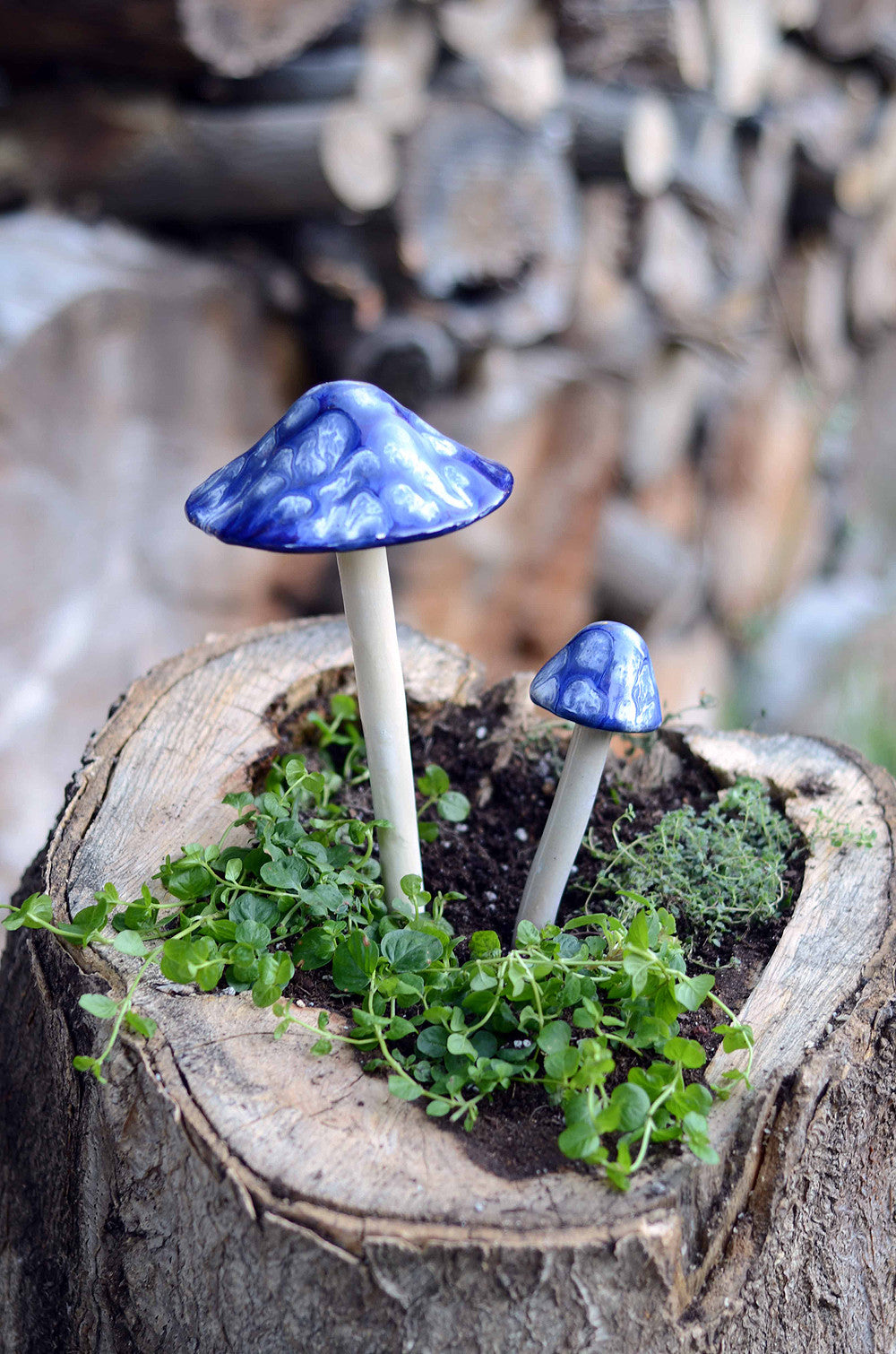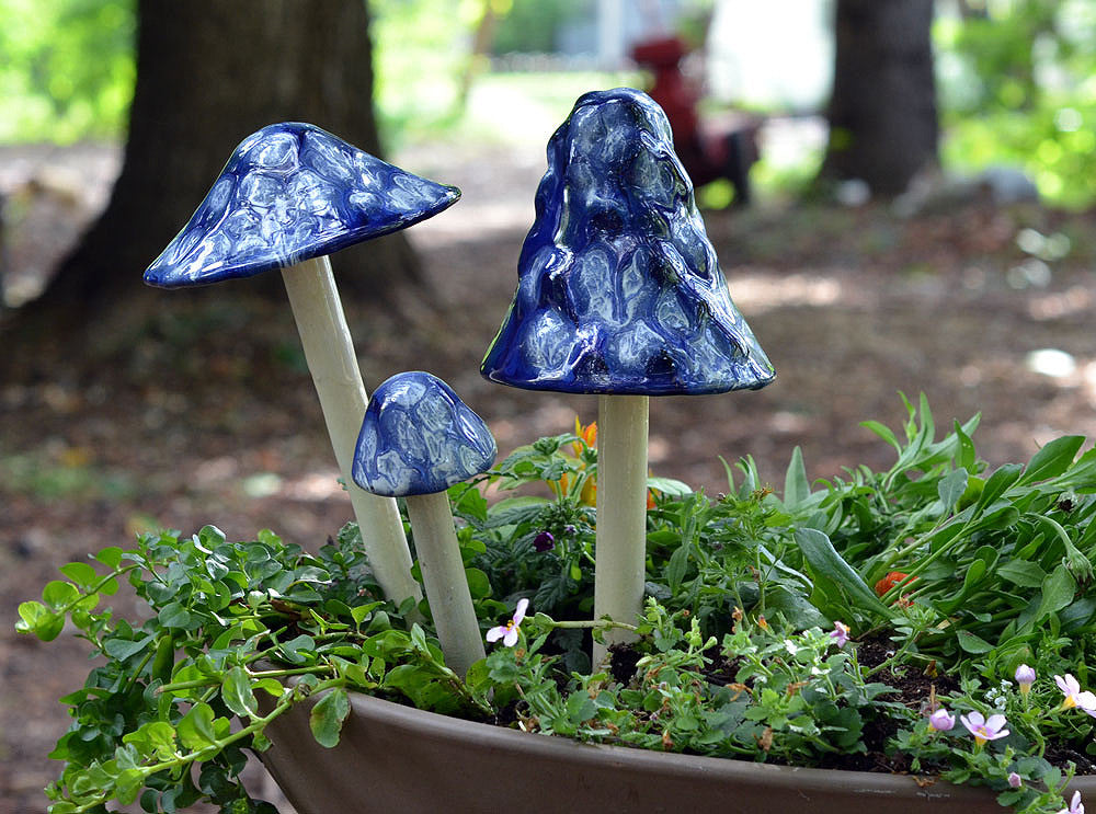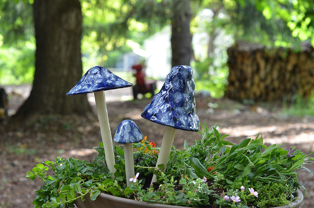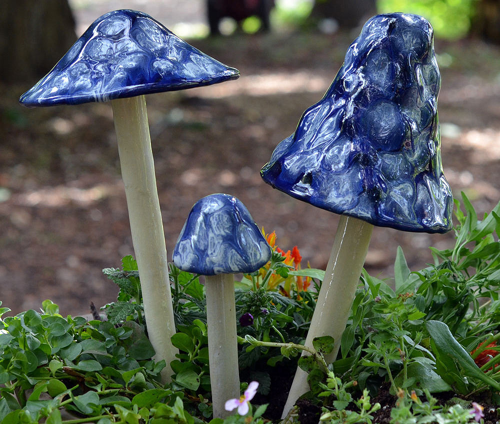 Invite enchantment to your garden with these colorful Shroomyz! Add an instant "pop" of color to your garden or yard! Each ceramic mushroom is individually handcrafted by artisans in Utah - Shroomyz are a product of JJ Potts. Circumference of "caps" varies from 2" - 8" depending on style and size. Will not fade in the sun. Shroomyz are now frost proof and can be left outside all year long!