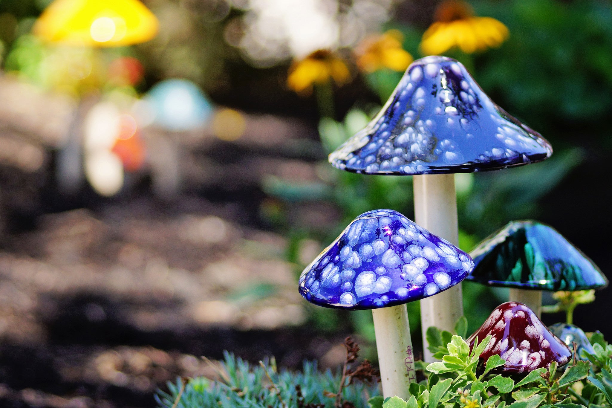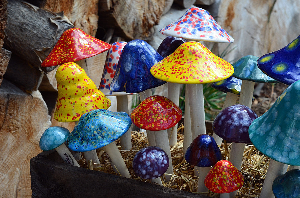 Missing that green thumb, but want great color in your yard, flowers or pots? A gardeners must have! Shroomyz add an instant "pop" of vibrant color! Each ceramic mushroom is individually handcrafted by artisans in Utah - Shroomyz are a product of JJ Potts. Circumference of "buttons" varies from 2" - 8" depending on style and size. Will not fade in the sun. Shroomyz should be brought indoors before the first frost.